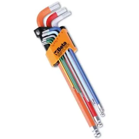 Jeu de 9 clés mâles 6 pans coudées, à tête sphérique, colorées