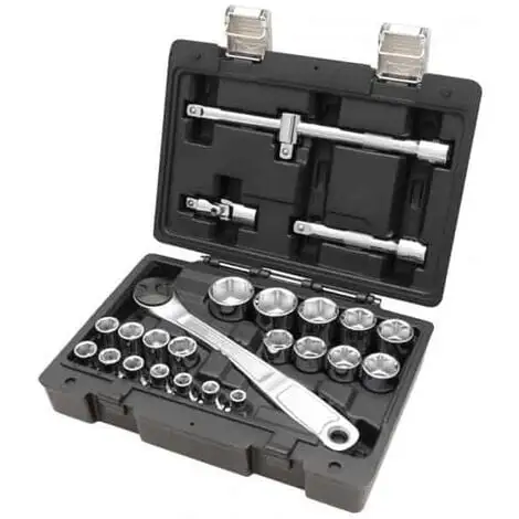 Composition de 20 douilles 6 pans et 5 accessoires, présentées en coffret plastique.