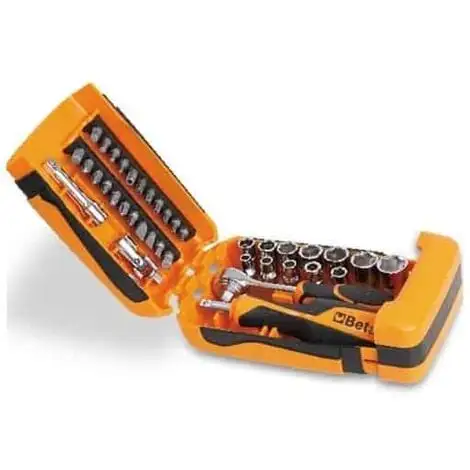 Contenant douilles, accessoires et outils.