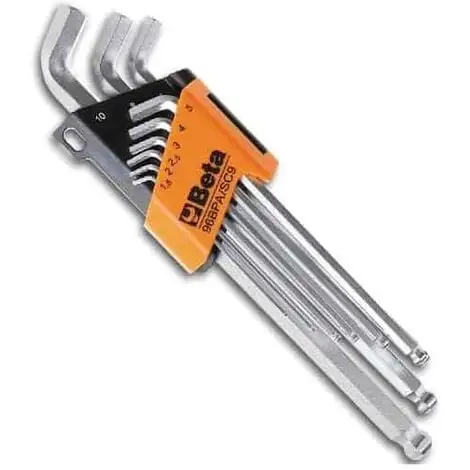 Jeu de 9 clés mâles 6 pans coudées à 110° à tête sphérique, modèle extra court