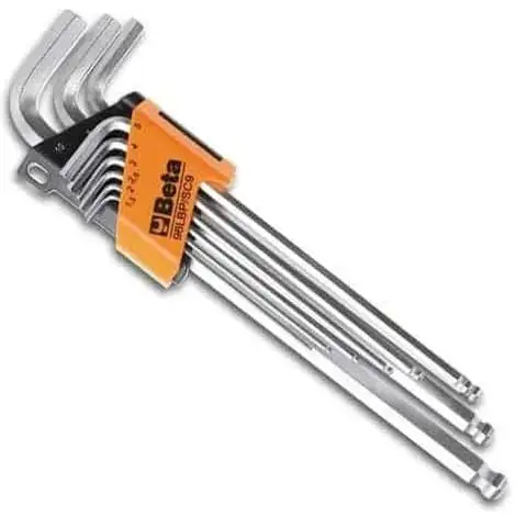 Assortiment de 9 clés mâles 6 pans coudées à tête sphérique, modèle extra long