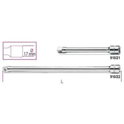 Rallonge carrés mâle et femelle 3/8, d’ un diamètre de 17 mm, ces rallonges existent en deux longueurs au choix 125 ou 250 mm.