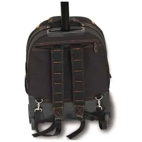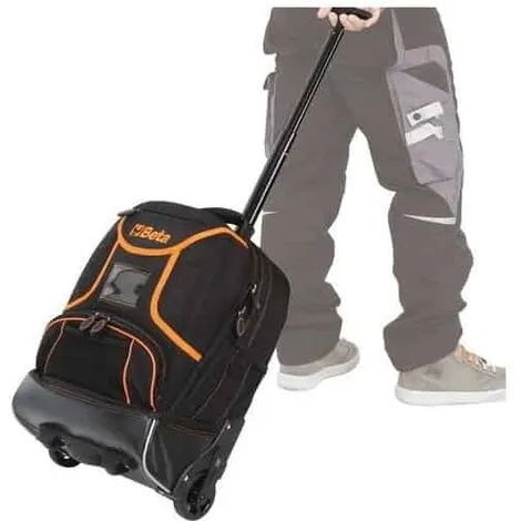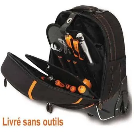 !!! Livré sans outils !!! avec poignée télescopique de transport Roues intégrées dans la structure avec protection anti-poussière, très pratique pour son utilisation sac à dos Deux panneaux porte-outils amovibles Cinq poches externes très pratiques Poche interne grande capacité pour ordinateur portable Base réalisée avec matériau résistant à l’eau