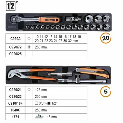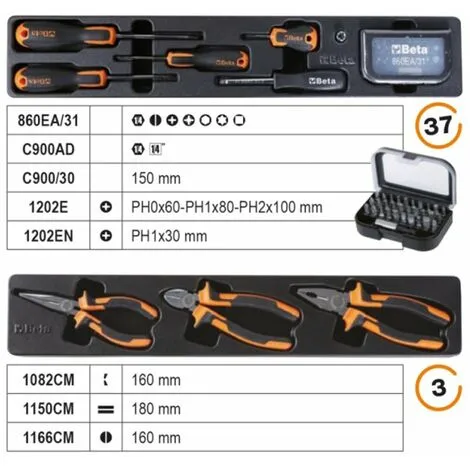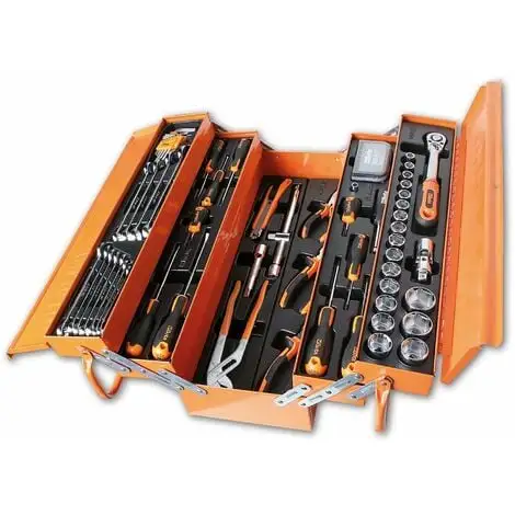 Boîte à outils Beta 2120L-E T91, avec un assortiment de 91 outils pour l’entretien général. Thermoformat rigide en ABS.