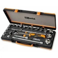 Coffret métallique avec plateau en mousse compacte comprenant 1 cliquet réversible 1/2″ avec 17 douilles 6 pans et 4 accessoires. Dimensions: 420 x 185 x 60 mm – Beta (art. 920A/C17M – sku. 009200924).