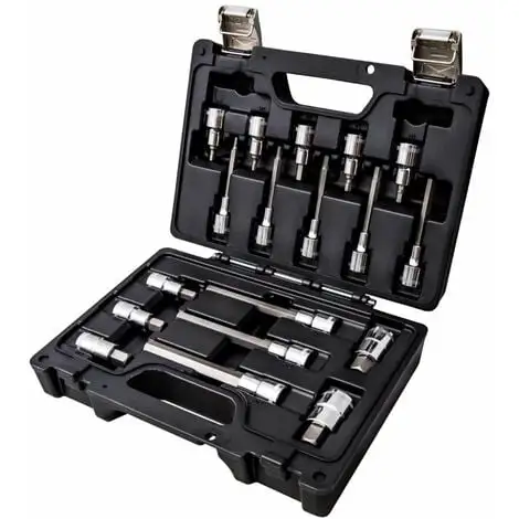 Mallette Porte clès Beta 923E PE C18, assortiment de 18 douilles pour vis à empreinte hexagonale, dans une boîte en plastique.