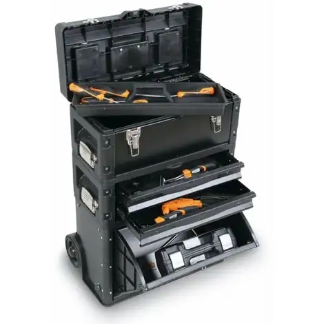 - Système de décrochage des modules avec accès à tous les différents compartiments à outils